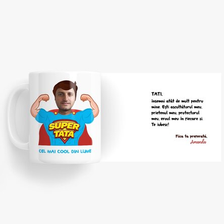 În dorința de a demonstra că ei sunt capul familiei, că pot să susțină și să fie un ajutor de nădejde în orice situație, de multe ori în ochii copiilor și a familiei este privit ca un super tată. Pentru un super men din viața noastră poți să oferi o cană personalizată perfectă pentru super eroul din viața ta.