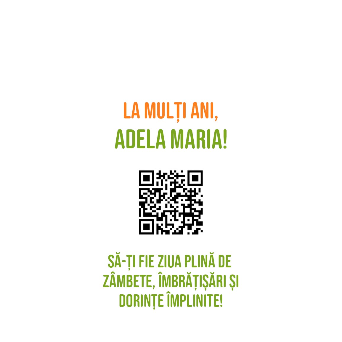Card pătrat personalizat cu text și cod QR - La mulți ani!
