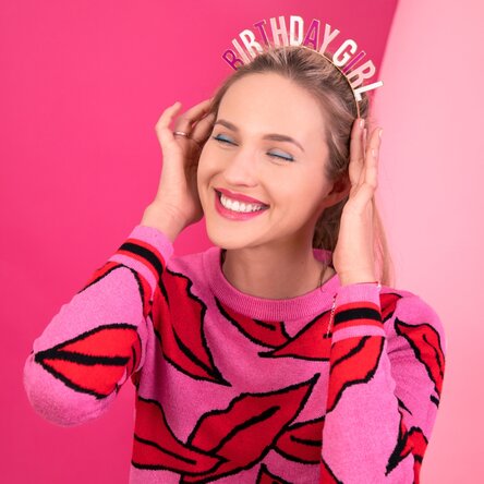 Coroniță Metal headband with inscription Birthday Girl, mix of colours. Dimensiune: înălțimea inscripției 4,5 cm.