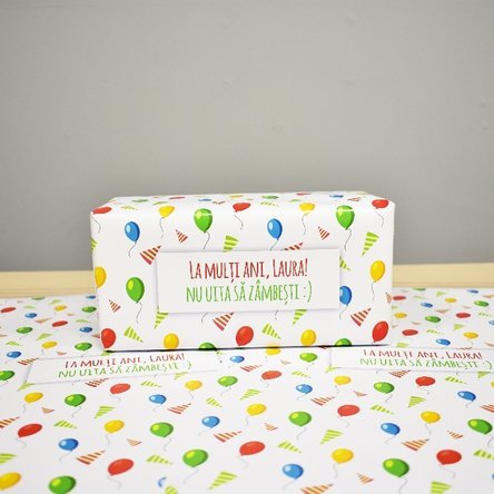 Ce pot personaliza?Hârtia de împachetat poate fi personalizată cu