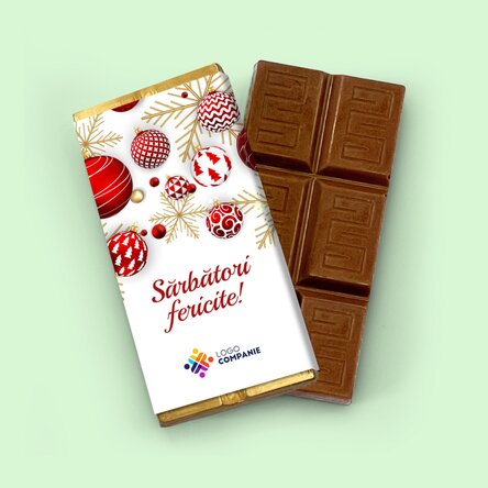Mini tabletă de ciocolată personalizată cu logo și mesaj - Globuri