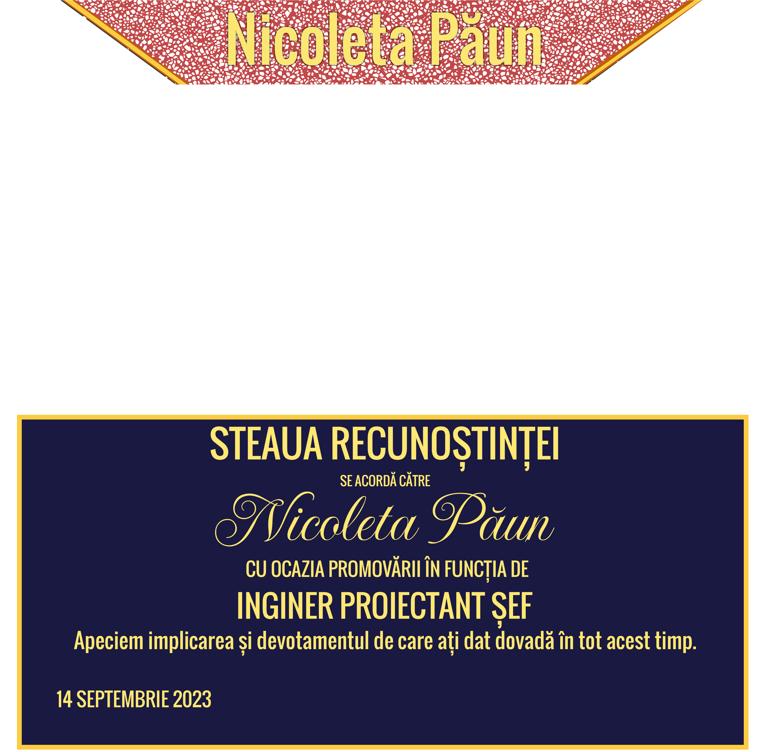 Poster cu agățătoare personalizat cu logo și text - Steaua recunoștinței pentru ingineri
