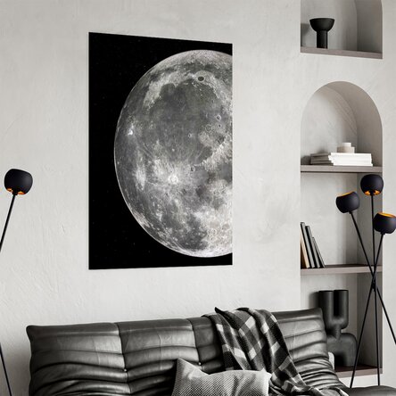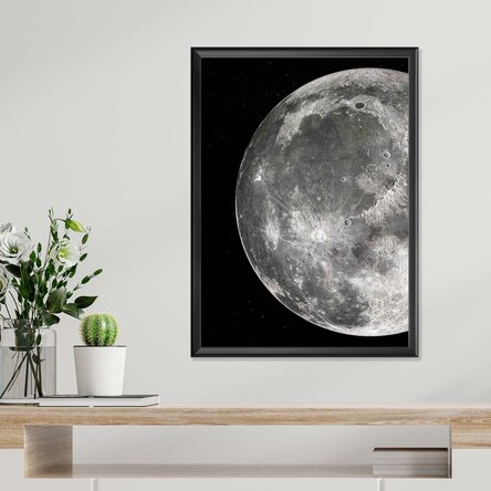 Craterele, mările lunare și nuanțele delicate de gri desenează o hartă ancestrală a timpului, martoră a miliarde de ani de coliziuni cosmice.
