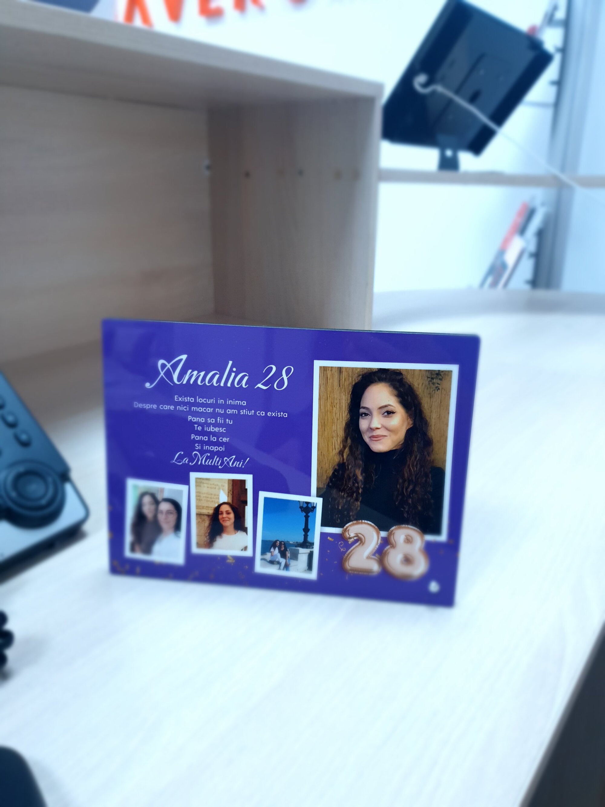 Ramă foto de birou personalizată cu 4 poze, nume și mesaj - La mulți ani!