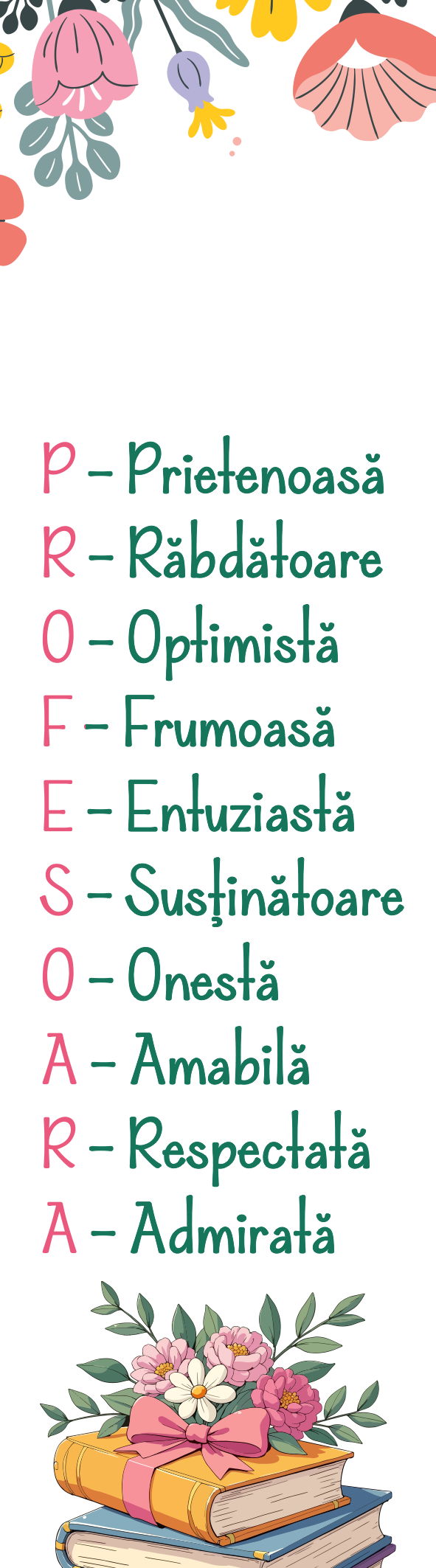 Semn de carte personalizat cu text pentru profesoară