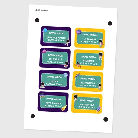 Set de 8 stickere (etichetă autoadezivă) personalizate pentru școală - Cosmos