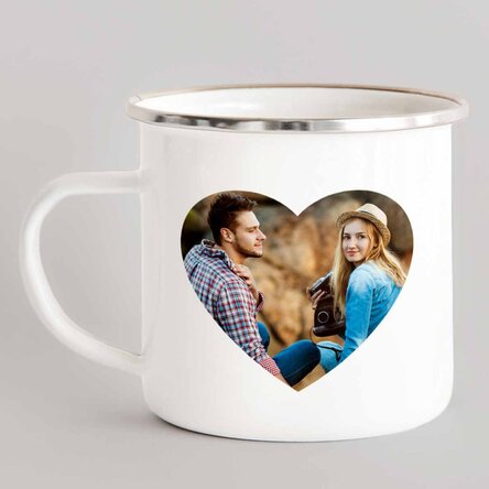 Dăruiește persoanei iubite momentele voastre cele mai dragi prin căni personalizate cu toartă în formă de inimă.
