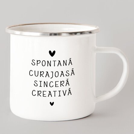 Această cană emailată poate fi personalizată chiar de tine prin intermediul platformei noastre, cu un mesaj special sau cu numele ei/lui, prin care transformi acest cadou în ceva cu adevărat original.