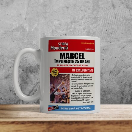 StarGift, însă, merge și mai departe și îți oferă o cană personalizată cu poze și mesaj, în stilul unui articol dintr-un ziar, pentru un plus de amuzament și originalitate! :)
