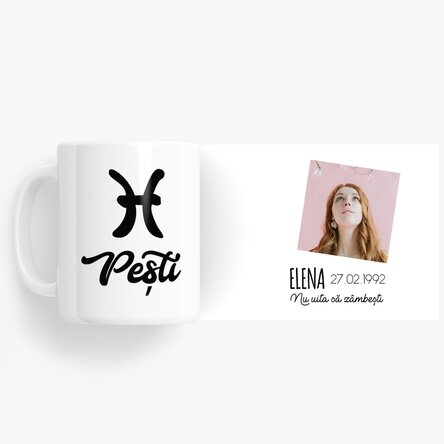 Clean the mug by hand with a soft cloth or fine sponge, avoid excessive rubbing or washing in the dishwasher.See also other Cadouri pentru 14 ani, Cadouri pentru adolescentă, Personalised gifts for teenagers, Cadouri pentru adolescenți, Cadouri pentru coleg, Cadouri pentru colegă, Cadouri personalizate pentru el, Cadouri pentru fin, Cadouri pentru frate, Cadouri pentru naș, Cadouri pentru nepoată, Cadouri pentru nepot, Cadouri pentru noi doi, Cadouri pentru prieten, Cadouri pentru prietenă, Cadouri pentru profesoară, Cadouri pentru șef, Cadouri pentru sefă, Cadouri pentru soră, Cadouri pentru soț, Cadouri pentru soție, Cadouri personalizate, Personalised mugs, Cani personalizate promo, Recomandările noastre, Bucataria, Cafea, Workaholic, Adolescenți, Personalised gifts for adults, Cadouri pentru zile reci, Căni cu zodii, Căni ceramice personalizate, Cadouri pentru fiu, Căni personalizate cu poze și text, Cadouri personalizate pentru zodia Pești, Cadouri personalizate cu zodii, Toate cadourile personalizate cu zodii, Cadouri personalizate la reducere, Căni ceramice colorate pe toartă și interior, Toate cănile personalizate, Reduceri săptămânale, Personalised mugs.