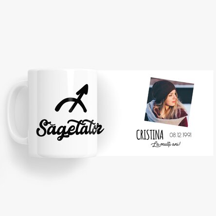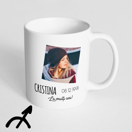 Această cană are dublul avantaj de a conține o fotografie pe care o poți adăuga chiar tu prin intermediul platformei noastre, cât și un mesaj special, prin care transformi acest cadou în ceva cu adevărat original. Este un cadou original deoarece prin intermediul pozei pe care o încarci și a mesajului special, creezi ceva cu adevărat unic.