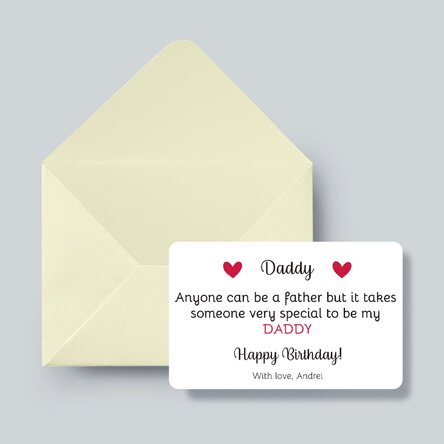 Oferă-i persoanei dragi un card personalizat pe care să îl poarte mereu în portofel. Poți alege cea mai frumoasă amintire împreună și să ii transmiți cel mai special mesaj.