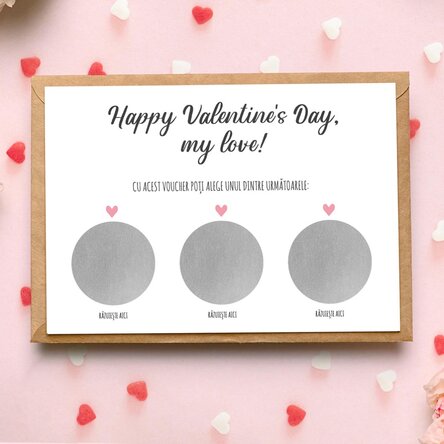 Dacă vrei să îi surprinzi cu adevărat de ziua îndrăgostiților, atunci cardul răzuibil este perfect atunci când vine vorba de completarea cadoului ideal. Acum ai ocazia să alegi 3 lucruri pe care le puteți face de Valentine's Day și să îl / o lași să aleagă. Cu siguranță reacțiile vor fi pe măsură și garantăm multe zâmbete pe buze.