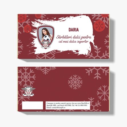 See also other Ciocolată personalizată de Crăciun, Dulciuri și bomboane personalizate sub licență oficială - FC Rapid 1923, Toate dulciurile și bomboanele personalizate, Cadouri pentru iubitorii de ciocolată, Cadouri de Crăciun sub licență oficiala - FC Rapid 1923, Ciocolată personalizată, Toate cadourile personalizate sub licență oficială, Tabletă de ciocolată personalizată de Crăciun, Tabletă de ciocolată personalizată de Moș Nicolae, Dulciuri și bomboane personalizate, Cadouri personalizate sub licență oficială - FC Rapid 1923 București, Toate cadourile de Crăciun, Toate cadourile personalizate sub licență oficială - FC Rapid 1923, Cadouri personalizate de Crăciun sub licență oficială FC Rapid 1923.