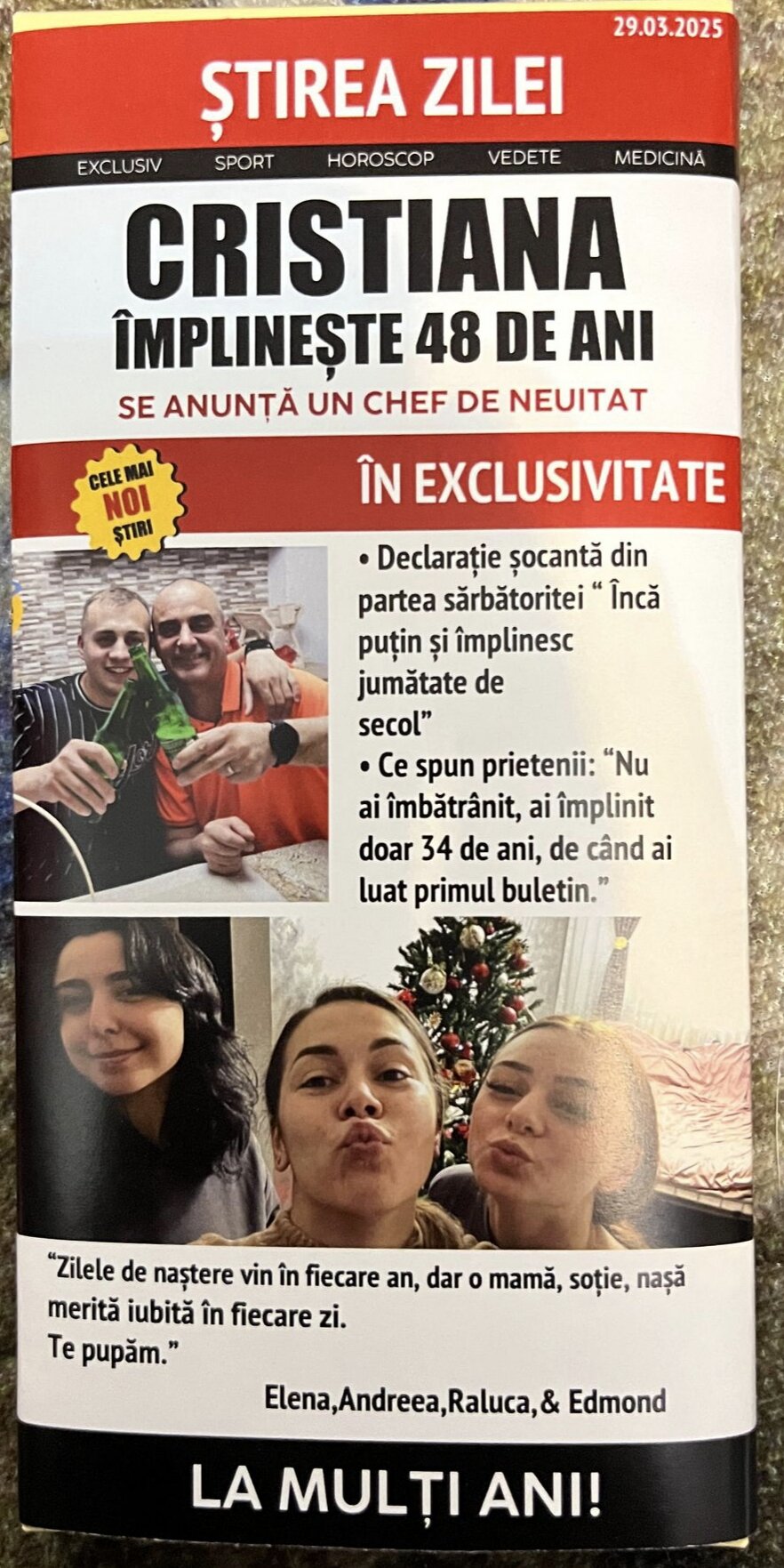 Visează să fie pe prima pagină a tabloidelor? Acum ai ocazia să îți faci prietenul „vedetă” și să adaugi un strop de glam în viața lui cu această ciocolată personalizată! Nu este doar un cadou dulce, ci și o ediție „specială” de știri mondene cu un titlu care ar putea fi pe coperta unei reviste de celebrități!