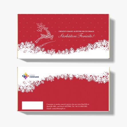 See also other Ciocolată personalizată de Crăciun, Dulciuri corporate de Crăciun, Set Cadou - Magia Crăciunului, Cadouri corporate de Crăciun, Cadouri corporate de Crăciun la reducere, Dulciuri personalizate de Crăciun, Toate cadourile corporate de Crăciun, Cadouri personalizate la reducere, Dulciuri și bomboane personalizate, Toate cadourile corporate - modele de Crăciun, Oferta de cadouri corporate de Crăciun, Oferta de cadouri corporate de Crăciun cu reduceri de 45% în luna Octombrie , Promoții, Toate cadourile de Crăciun, Black week - Reduceri de până la 50% la cadourile dulci, Black week - reduceri de 40%.