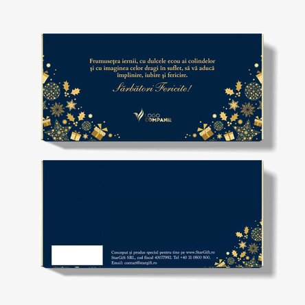 See also other Ciocolată personalizată de Crăciun, Dulciuri corporate de Crăciun, Ciocolată personalizată, Set Cadou - Poveste de Crăciun, Tabletă de ciocolată personalizată de Crăciun, Tabletă de ciocolată personalizată de Moș Nicolae, Dulciuri personalizate de Crăciun, Toate cadourile corporate de Crăciun, Cadouri personalizate la reducere, Dulciuri și bomboane personalizate, Dulciuri personalizate la reducere, Toate cadourile corporate - modele de Crăciun, Oferta de cadouri corporate de Crăciun, Oferta de cadouri corporate de Crăciun cu reduceri de 45% în luna Octombrie , Promoții, Toate cadourile de Crăciun, Black week - Reduceri de până la 50% la cadourile dulci, Black week - reduceri de 40%, Black Week - Reduceri de până 40% la cadouri corporate.