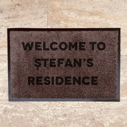 Pentru o casă primitoare este musai să ai un covor la intrare, dar nu unul roșu, ci unul care să te uimească când cineva iți trece pragul. Astfel iți poți întâmpina invitații cu un covoraș pe care îl poți personaliza foarte ușor cu numele de familie/mesaj ori o urare de bun venit.
