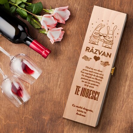 Notă: Vinul nu se poate alege. În funcție de stocul disponibil se trimite Budureasca sau Domeniile AvereștiSee also other Cadouri de Valentine's Day și Dragobete, Cutii gravate pentru Valentine's Day, Cadouri personalizate pentru cupluri, Cadouri personalizate pentru iubit, Toate cadourile pentru cupluri, Cadouri din lemn, Cutii de vin personalizate pentru o sticlă, Cadouri gravate, Cadouri personalizate, Cutii de vin personalizate din lemn, Recomandările noastre, Cadouri pentru pasionații de vinuri, Adulți, Cutii de vin personalizate pentru iubit, Toate cutiile de vin, Cutii de vin gravate, Toate cadourile de Valentine's Day și Dragobete, Toate cadourile pentru iubit, Toate cadourile pentru iubit, Cadouri personalizate de ziua îndrăgostiților, Cadouri de ziua îndrăgostiților, Cadouri personalizate de Valentine's Day, Cadouri de Valentine's Day, Cutii gravate pentru Dragobete, Cadouri romantice de Valentine's Day, Cutii din lemn gravate.