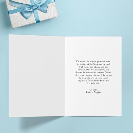 See also other Cadouri de zi de naștere pentru el, Cadouri pentru coleg, Cadouri personalizate pentru el, Cadouri pentru fin, Cadouri pentru frate, Cadouri pentru naș, Cadouri pentru nepot, Cadouri pentru prieten, Cadouri pentru soț, Cadouri personalizate, Cadouri pentru pasionații de bere, Fotbal, Adulți, Cadouri personalizate pentru tata, Felicitari si carduri la reducere, Toate felicitările și cardurile personalizate, Felicitări și carduri cu text, Felicitări pentru el , Toate cadourile pentru el, Toate cadourile pentru iubit, Toate cadourile pentru iubit, Felicitări personalizate, Reduceri de vară - 60%, Ofertele verii - peste 100 top cadouri personalizate, Felicitări și carduri personalizate.