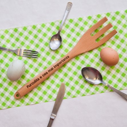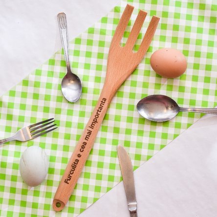 de folos. Furculița noastră de lemn personalizată este la datorie! Nu este o