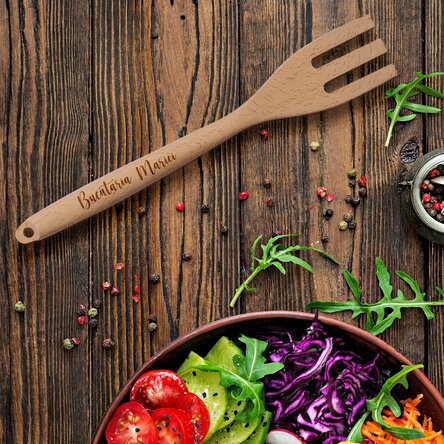 de folos. Furculița noastră de lemn personalizată este la datorie! Nu este o