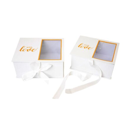 The gifts you give will find their place in this delicate box with a window that allows you to see some of the gifts inside.