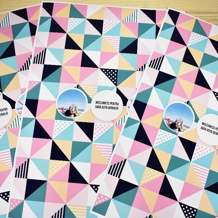Notă: În funcție de modelul ales, la setul de 3 coli, personalizarea poate apărea pe una dintre ele, iar pe celelalte două este printat doar fundalul.