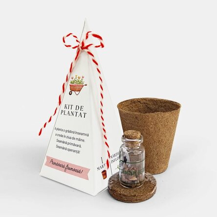 Oferă un mărțișor plin de simboluri: un kit cu semințe de flori, gata să răsară și să aducă primăvara într-un ghiveci.