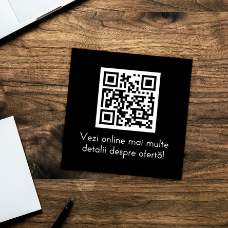 Tu îți personalizezi produsul, introduci link-ul care dorești să fie accesat, iar clienții tăi doar vor scana cu telefonul mobil codul QR de pe produs și voilà, conectarea va avea loc automat.
