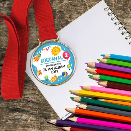 Surprinde-l pe cel mic de 1 Iunie cu un cadou unic și plin de semnificație! Această medalie personalizată este modul perfect de a-i arăta cât de special este și cât de mult îi apreciezi talentul, creativitatea și efortul.