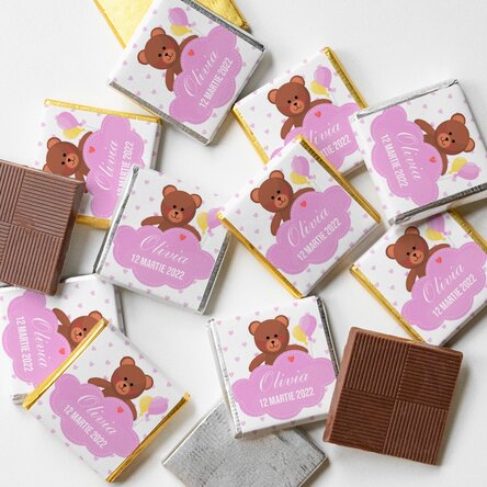 Tabletele de ciocolată vor aduce un zâmbet pe chipul celor care vor primi cadoul dulce dar și multă emoție când vor vedea în miniatură aceste minunate ciocolățele cu numele minuni venite pe lume.