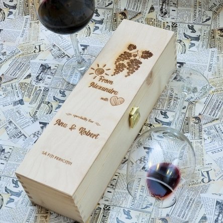 Notă: Vinul nu se poate alege. În funcție de stocul disponibil se trimite Budureasca sau Domeniile AvereștiSee also other Thank you gifts, Gifts for colleagues, Gifts for colleagues, Gifts for your girlfriend, Gifts for the teacher, Gifts for teachers, Gifts for the boss, Gifts for the boss, Gifts for sister, Wooden gifts, Personalised wine boxes for one bottle, Engraved gifts, Personalised gifts, Personalised wooden wine boxes, Our recommendations, Gifts for wine enthusiasts, Personalised gifts for adults, All wine boxes, Engraved wine boxes, Engraved wine boxes for couples and relationship anniversaries, New and original gifts, Personalised autumn gifts, Engraved wooden boxes.