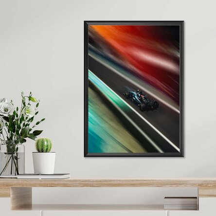 Un poster ce captează viteza și adrenalina din lumea curselor. Mașina de curse, cu designul său aerodinamic, simbolizează performanța extremă, precizia și pasiunea pentru viteză. Fiecare detaliu transmite forța, determinarea și energia unei competiții intense pe pista de curse.