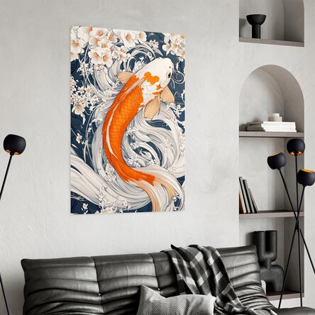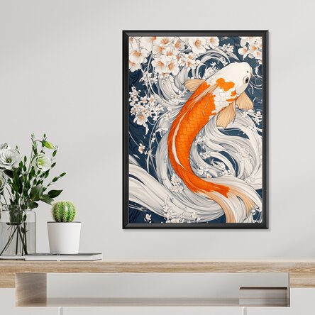 Acest poster elegant surprinde grația și simbolismul profund al peștilor japonezi, recunoscuți pentru culorile vibrante și mișcările fluide. În cultura japoneză, aceștia reprezintă curajul, perseverența și succesul în fața obstacolelor, fiind adesea asociați cu legende despre transformare și depășirea limitelor. Acești pești aduc liniște vizuală și o energie pozitivă oricărui spațiu. Ideal pentru decoruri zen, interioare moderne sau colțuri de relaxare.