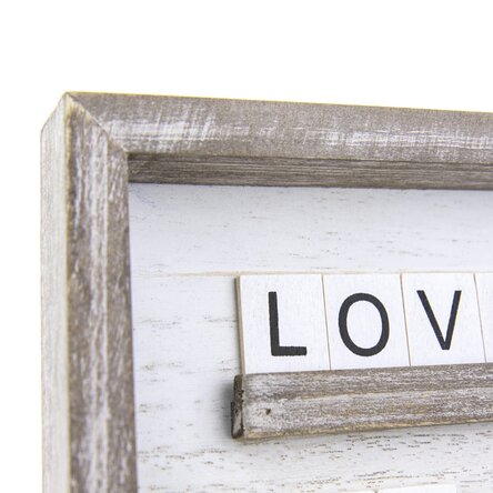 Rama vine cu un set de 120 de cartonașe din lemn cu litere pentru a putea personaliza mesajul dorit.