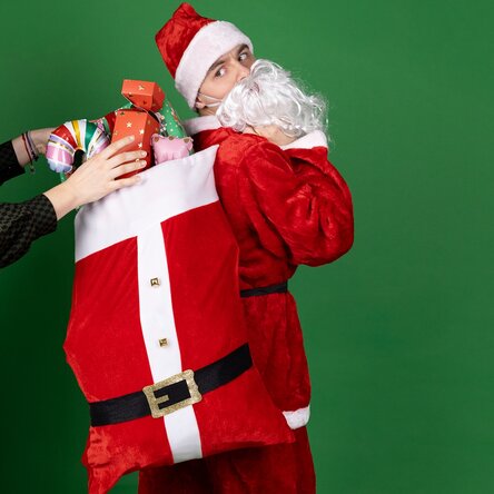 Ambalează darurile de Crăciun într-un mod special! Acest săculeț textil, decorat simpatic ca îmbrăcămintea lui Moș Crăciun, adaugă un plus de magie fiecărui cadou. Poate fi refolosit an de an și este ideal pentru dulciuri, jucării, cosmetice sau mici surprize festive.