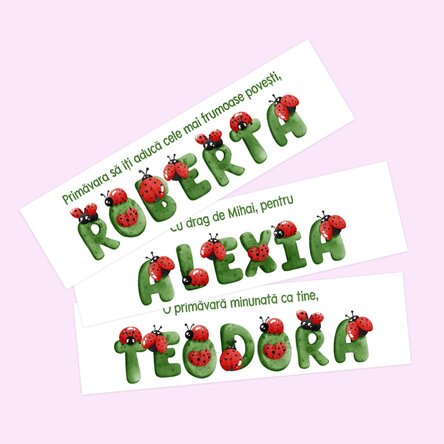 Primăvara este mai mult decât un simplu anotimp, este o stare de spirit. Oferă un semn de carte personalizat pentru iubitorii de cărți, fie că este cea mai bună prietenă a ta sau colega de școală. Ce pot personaliza? Semnul de carte poate fi personalizat cu text. Cum pot face personalizarea? Pasul 1: Apasă pe butonul "Personalizare" Pasul 2: Completează câmpurile de text cu mesajul dorit Pasul 3: Cum ai terminat personalizările, apasă butonul "Finalizare" și adaugă produsul în coș.