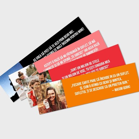Oricât de ocupat ai fi, trebuie să ne găsim timp să mai citim din când în când o carte. Să ne lăsăm sufletul și gândurile să se piardă printre rândurile autorului. Pentru a păstra cartea în cea mai bună forma a sa și să nu fim nevoiți să îndoim pagina, mulți dintre cititori folosesc un semn de carte. Acum poți dărui celor dragi, pasionați de cărți, un semn de carte personalizat cu fotografii și mesaj.