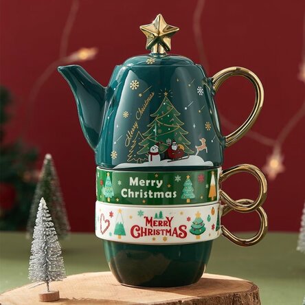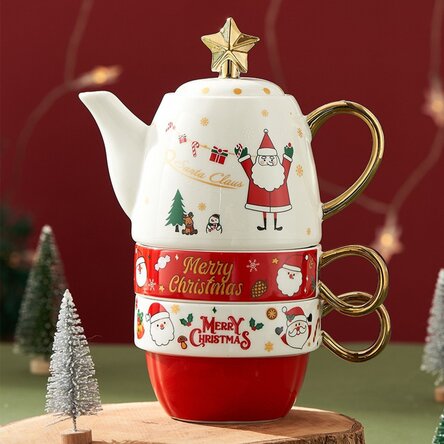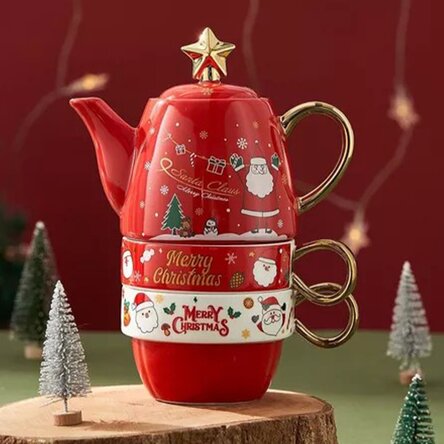 Set cadou de 2 căni și ceainic de Crăciun