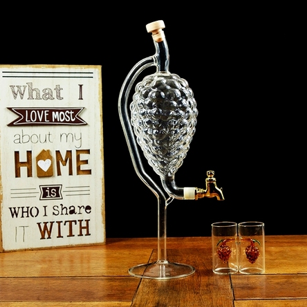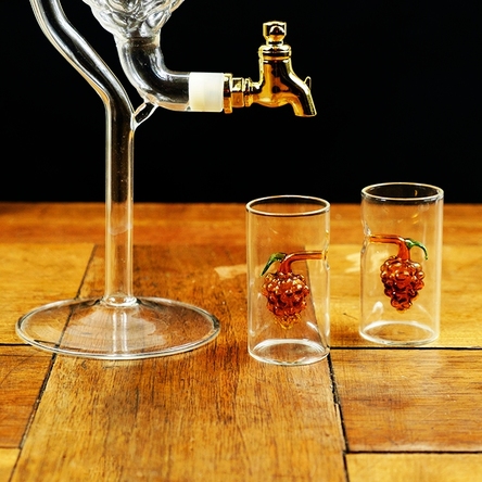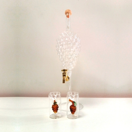 Atâta timp cât este consumat cu măsură, un păhărel de tărie nu face rău. Fapt pentru care, ne-am gândit să-ți aducem setul din sticlă format dintr-un recipient în formă de ciorchine de strugure cu robinet și două păhărele, căci esențele tari se beau în pahare mici. Totodată, este un cadou perfect pentru iubitorii de țuică sau orice altă băutură tare.