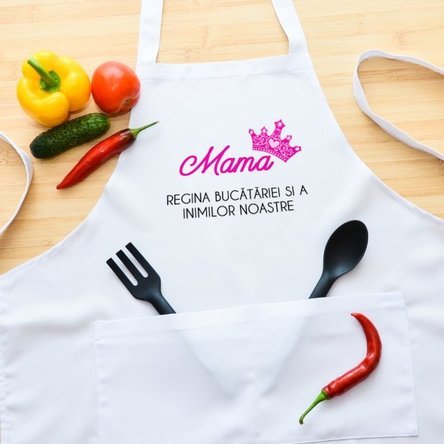 După cum bine știm, este de prisos să îi facem și un mic cadou, fie că este onomastica sau ziua internațională a mamel. Pe lângă faptul că designul este creat special pentru ea, sortul este foarte util în bucătărie, doar știm foarte bine cât timp petrec mămicile în bucătărie! De asemenea șorțul dispune de două buzunare foarte utile pentru a tine aproape ustensilele sau ceva condimente de care are nevoie, până când se apucă de treabă. Aaa...și să mai menționăm că din toate bunătățile preparate de mama voastră dragă, mai mult ca sigur o să ajungeți să degustați din preparate.