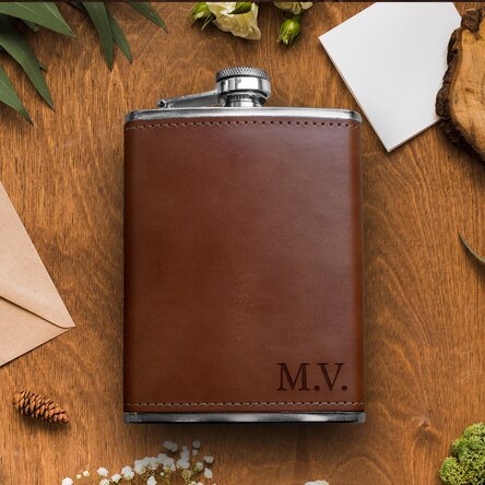 Fiind de dimensiuni mici, aceasta poate fi purtată cu ușurință în buzunarul de la pantaloni sau în buzunarele înguste de la geci ori poate fi transportată în buzunarele înguste din bagaj. Sticla de buzunar este îmbrăcată în piele de culoare maro închis, astfel încât sticla nu are cum să iți alunece din mănă. Cu o formă elegantă și un design unic, personalizarea se realizează pe o singură față a sticlei.