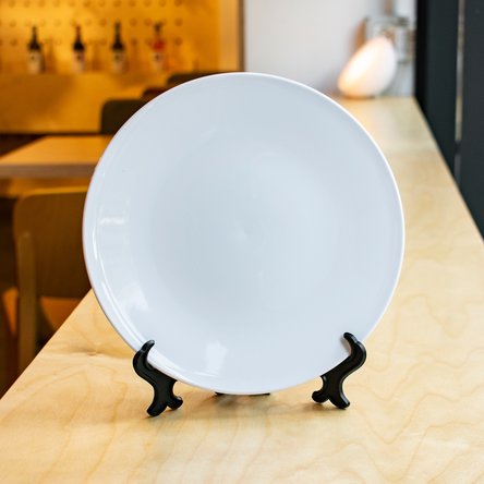 Pentru ca farfuriile noastre personalizate să fie puse la loc de cinste, fie în bucătărie sau pe o etajeră din casă, recomandăm să folosiți un suport special creat pentru ele. Împreună cu farfuria, acest suport va crea un element simplist dar de efect în locul unde va fi amplasat.