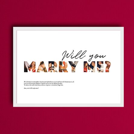 Cererea în căsătorie este un moment ce va uni destinele a doi oameni pentru totdeauna. Acest moment trebuie savurat din plin, atât de către tine cât și de viitoarea ta soție. Chit că îi vei cere mâna într-un cadru privat, alături de cei dragi sau cine știe în fața publicului larg ori pe o plajă, noi iți propunem ca evenimentul să îl înrămezi într-un colaj de fotografii. Sigur veți fi surprinși în multe fotografii, pentru că indiferent de loc se găsesc câțiva "paparazzi" să surprindă momentul.