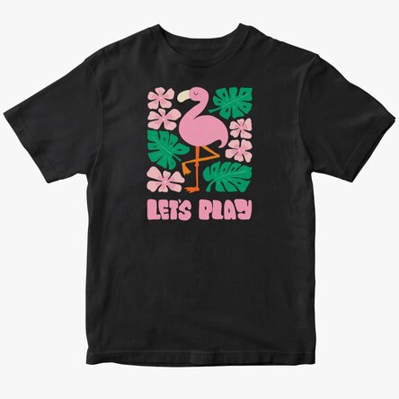 Tricou adorabil pentru copii, confecționat din bumbac, decorat cu un imprimeu vesel cu flamingo roz — perfect pentru zilele însorite și pline de joacă!