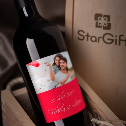- Pe langa eticheta personalizata poti opta si pentru o sticla de vin, din cele pe care le avem (rosu, alb sau roze) ce v-a veni personalizat alaturi de eticheta.